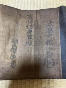 浄土真宗の本山から授かった掛け軸の裏には、裏書が記載されています。