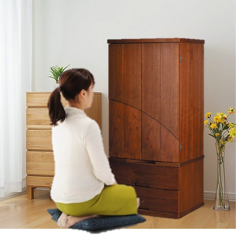和室、床の間、フローリングの洋室にもピッタリです。また。地袋付きのお仏間にも最適です。 (腰掛けて拝むのに便利なスツール付き)