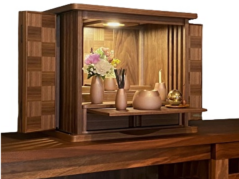 - 国産 モダン仏壇 『ダミエ〜市松模様』15号 ウォールナット